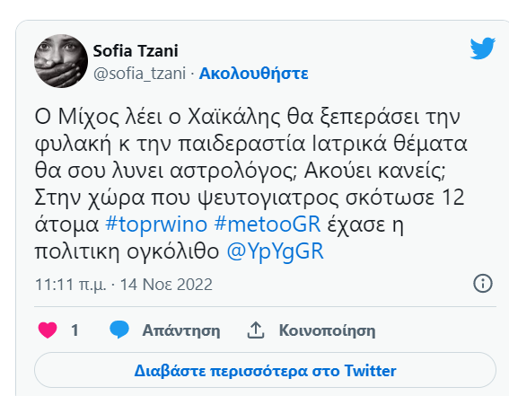 Την ίδια ώρα σάλος προκλήθηκε και με την εν λόγω τοποθέτηση στο Twitter με τους χρήστες να μιλούν για «ντροπή».