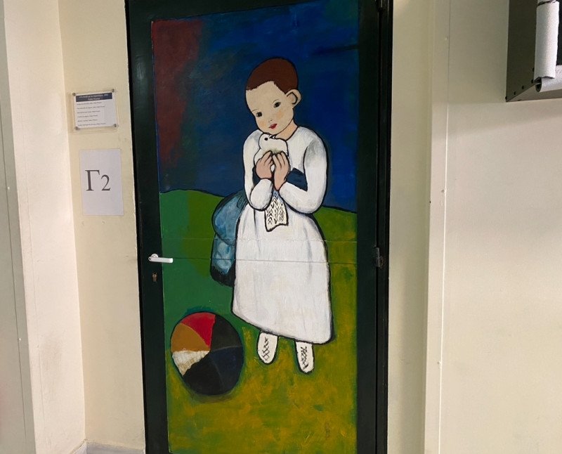 Τα «Μπλε Πουλιά» του Αλέκου Φασιανού, «Το παιδί με το περιστέρι» του Πάμπλο Πικάσο και ακόμα 18 γνωστά έργα τέχνης Ελλήνων και ξένων καλλιτεχνών, που φιλοτέχνησαν έξι μαθητές στις πόρτες των αιθουσών διδασκαλίας, άλλαξαν με μοναδικό και καλαίσθητο τρόπο την εικόνα του 9ου Γυμνασίου Καλαμαριάς.