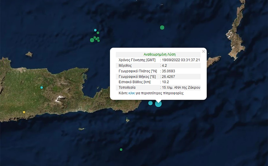 Σεισμός 4,2 Ρίχτερ σημειώθηκε στις 6:30 στην Κρήτη σύμφωνα με το Γεωδυναμικό Ινστιτούτο. Η δόνηση 15 χλμ ανατολικά-νοτιοανατολικά της Ζάκρου στο νομό Λασιθίου και ήταν επιφανειακός, με βάθος μόλις 10 χλμ.