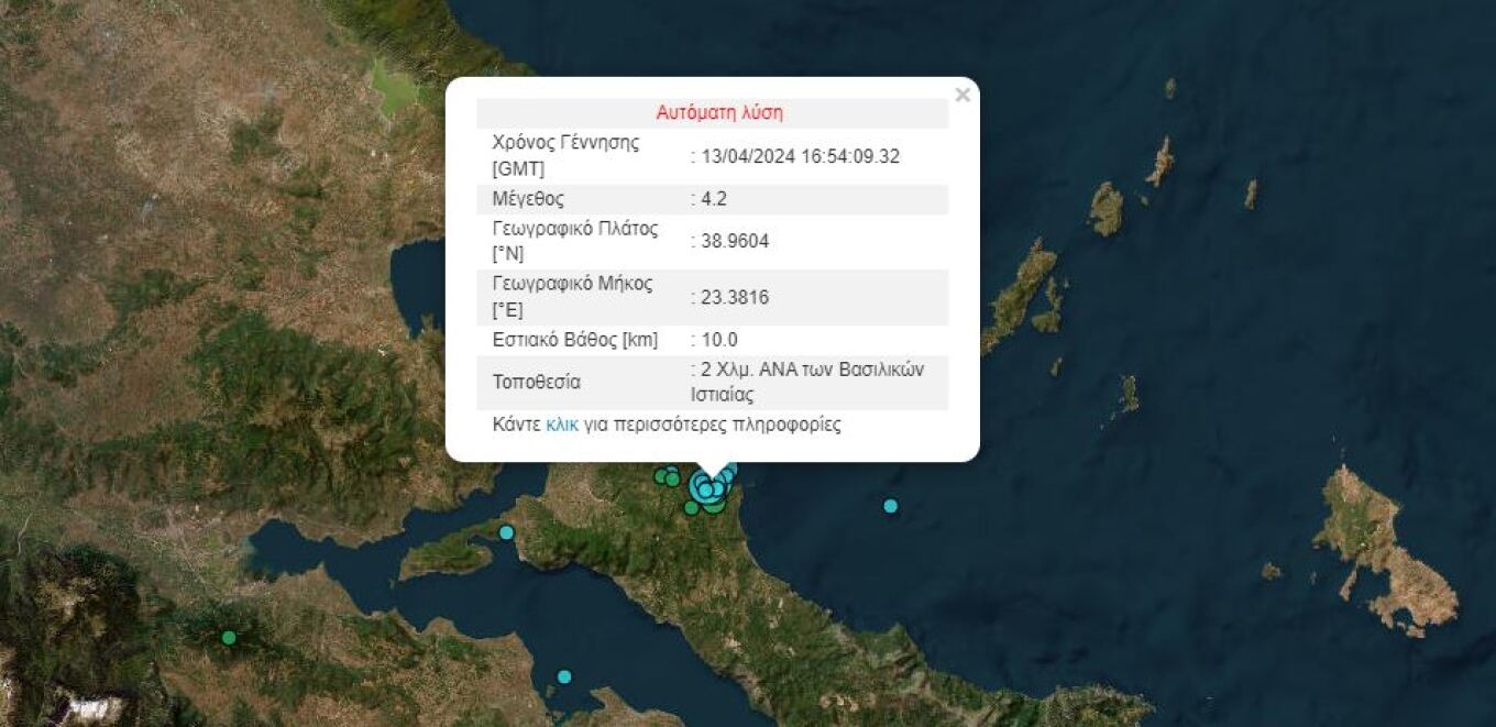 Πιο αναλυτικά και σύμφωνα με την αυτόματη λύση του Γεωδυναμικού Ινστιτούτου, ο σεισμός ήταν μεγέθους 4,2 Ρίχτερ.