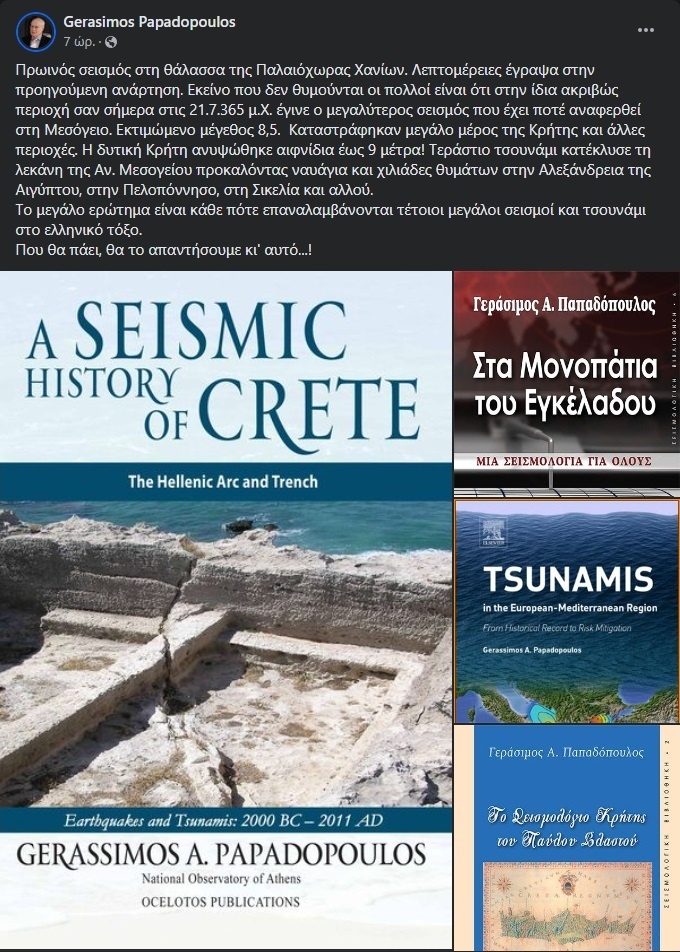 Γεράσιμος Παπαδόπουλος για τον καταστροφικό σεισμό του 365 μ.Χ.