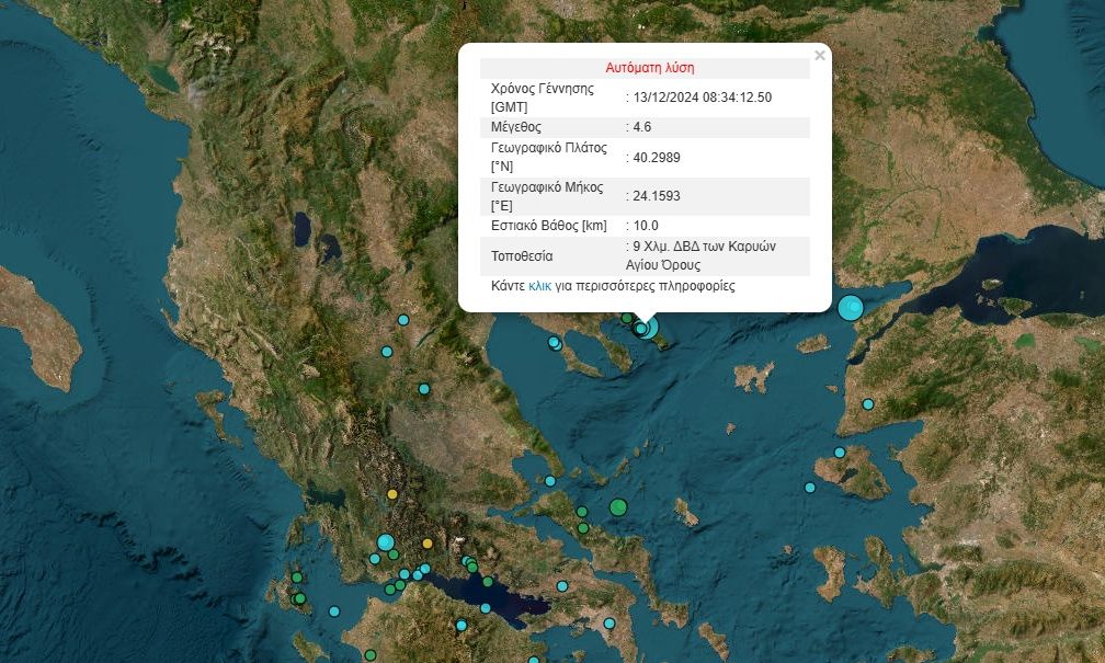 Νέος σεισμός στην περιοχή του Αγίου Όρους. Αναστάτωση σε πολλές περιοχές στην Βόρεια Ελλάδα.