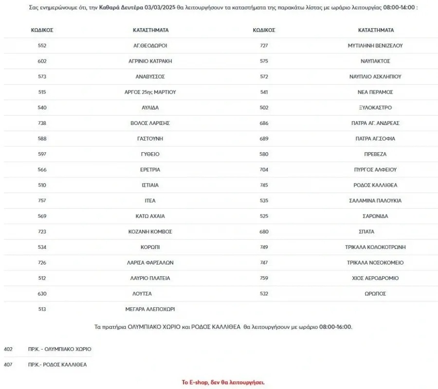 Οι λαϊκές αγορές λειτουργούν κανονικά όπου είναι προγραμματισμένες Κλειστά θα είναι τα σούπερ μάρκετ των αλυσίδων Σκλαβενίτης, Γαλαξίας, Μασούτης, Κρητικός, Market in, ΑΒ Βασιλόπουλος (πλην όσων αναφέρονται πως θα παραμείνουν ανοιχτά). Επιπλέον ανοιχτά είναι και τα OK MARKET, μίνι μάρκετ, παντοπωλεία, φούρνοι, ζαχαροπλαστεία.