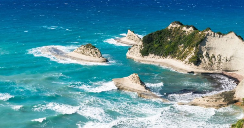 Ο λόγος για το Ακρωτήριο Δράστης, το οποίο βρίσκεται κοντά στην τοποθεσία Περουλάδες και 40 χιλιόμετρα μακριά από τη χώρα της Κέρκυρας, «πνιγμένο» στην πυκνή βλάστηση, με πρωταγωνιστή μεσοπέλαγα έναν κεντρικό βράχο που πλαισιώνεται από μικρότερες νησίδες, μέσα σε κρυστάλλινα νερά, με υπέροχες πράσινες και μπλε ανταύγειες.