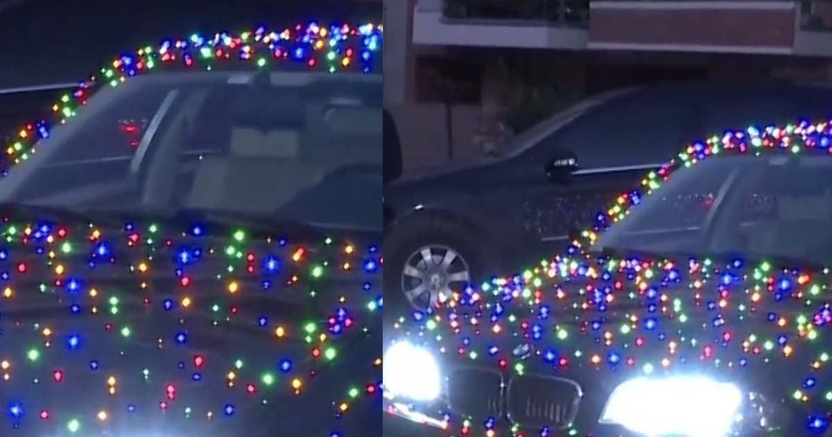 100 μέτρα καλωδίου, 8 ώρες και 25 μέτρα μονωτική ταινία χρειάστηκαν για να στολίσει ο οδηγός το αυτοκίνητό του με εκατοντάδες χριστουγεννιάτικα λαμπάκια