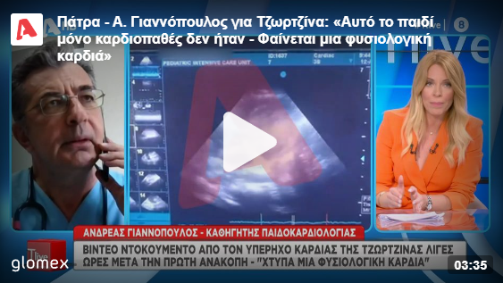 Τον υπέρηχο της καρδιάς της Τζωρτζίνας σε εξέταση που έγινε αμέσως μετά την πρώτη ανακοπή που υπέστη το παιδί στις 11 Απριλίου το 2021 στο Καραμανδάνειο νοσοκομείο και μετά την ανάνηψη που κράτησε 55 λεπτά, παρουσίασε ο Alpha σε ένα βίντεο ντοκουμέντο.