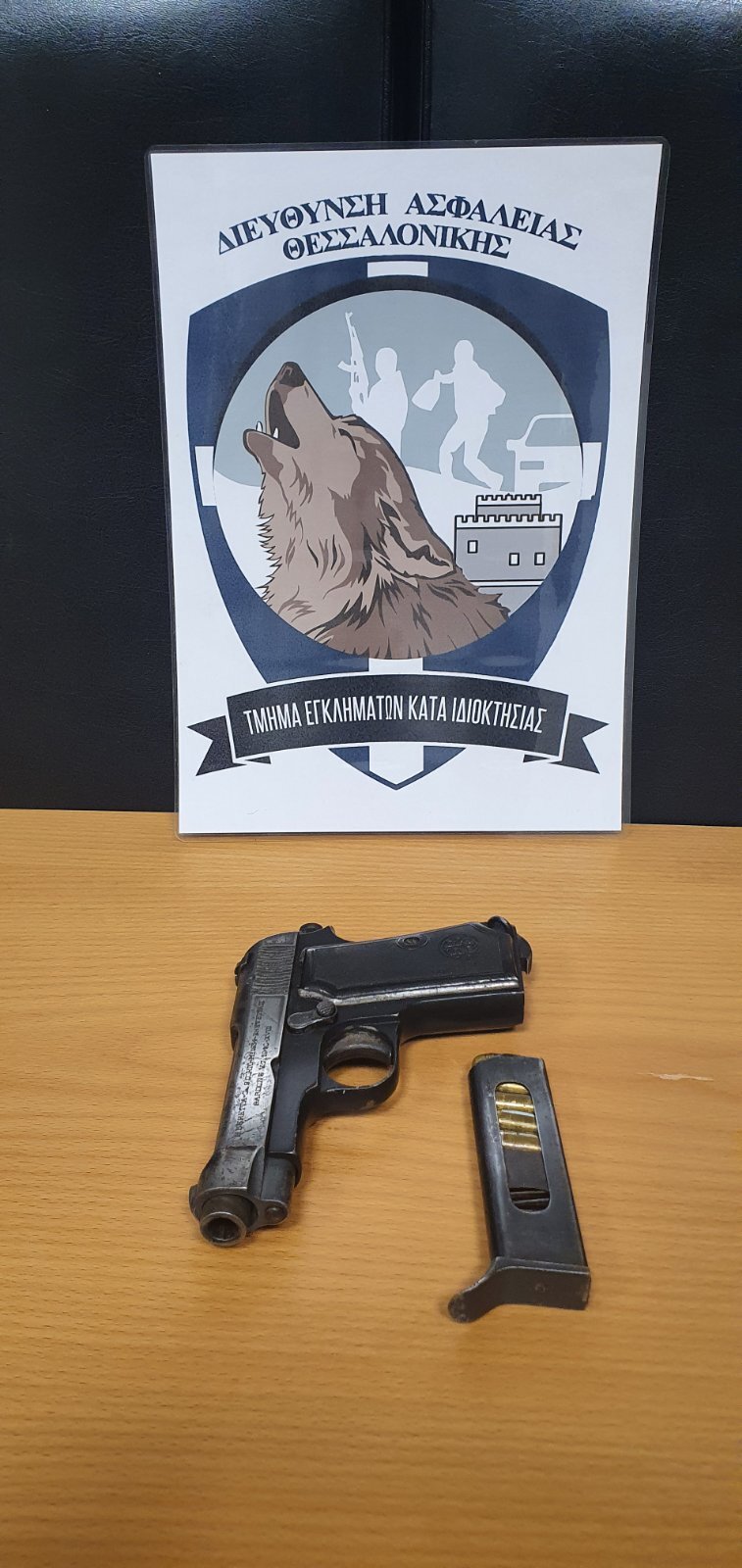 Στο πλαίσιο οργανωμένης επιχείρησης του Τμήματος Εγκλημάτων κατά Ιδιοκτησίας, εντοπίστηκαν και συνελήφθησαν μεσημβρινές ώρες χθες, Παρασκευή 23 Σεπτεμβρίου, στις περιοχές της Πυλαίας και της Πολίχνης. Σημειώνεται, ότι κατά την ακινητοποίησή του ο 49χρονος προέβαλε μεγάλη αντίσταση, ενώ στην κατοχή του βρέθηκαν και κατασχέθηκαν ένα πιστόλι με γεμιστήρα που έφερε πέντε φυσίγγια, ένα πλαστό Δελτίο Ταυτότητας ιταλικών Αρχών, μία πλαστή άδεια ικανότητας οδήγησης ιταλικών Αρχών και το χρηματικό ποσό των 725 ευρώ ως προερχόμενο από αξιόποινες πράξεις.