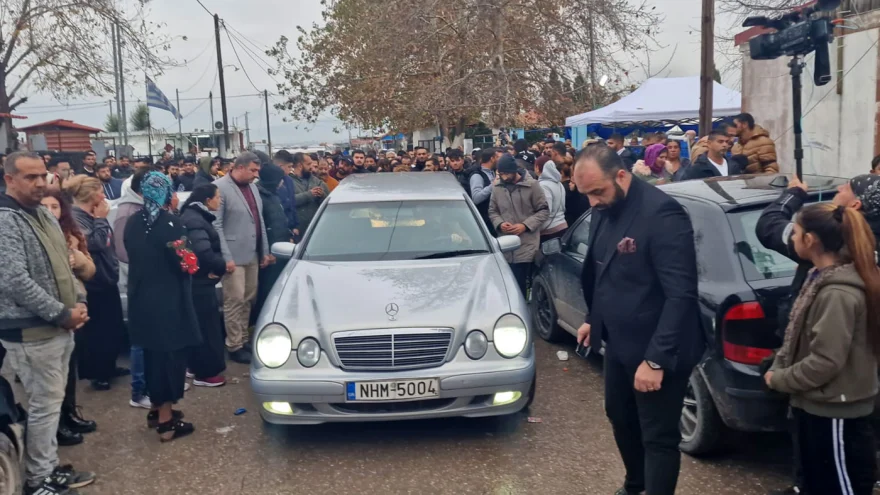 Πλήθος κόσμου έχει μαζευτεί για να πει το τελευταίο αντίο στον 16χρονο Ρομά Κώστα Φραγκούλη