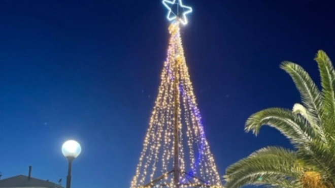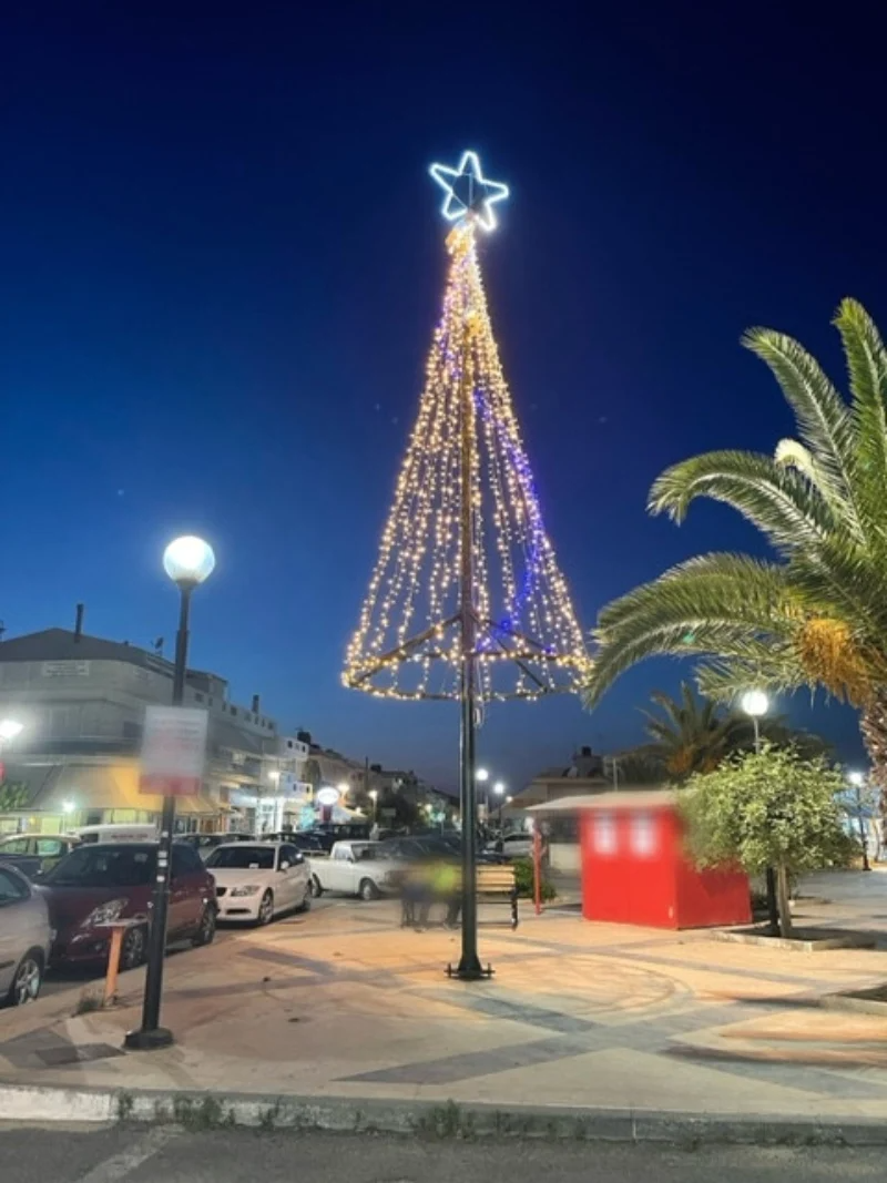 Ένα φωταγωγημένο χριστουγεννιάτικο δέντρο αντίκρισαν οι κάτοικοι της Αλικαρνασσού, στο Ηράκλειο Κρήτης, μέσα στο καλοκαίρι.
