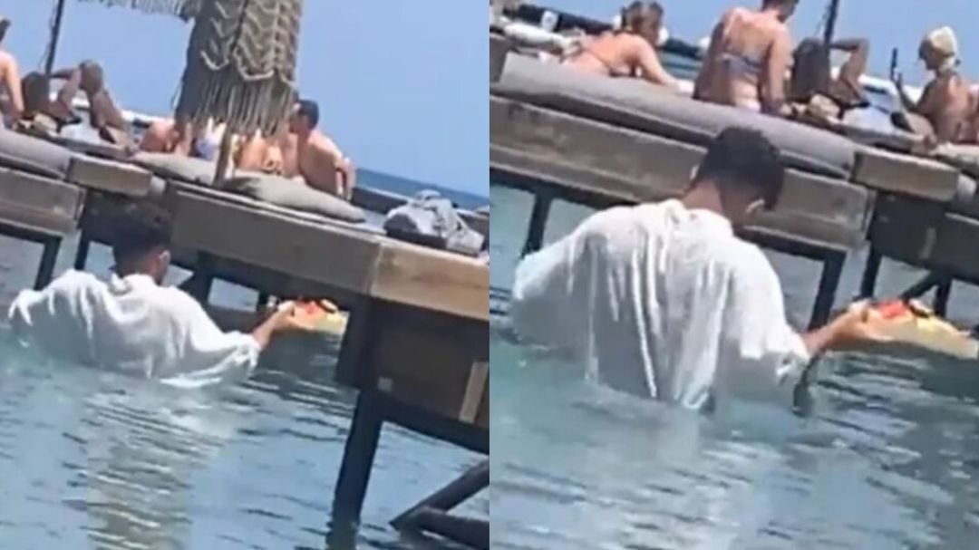 Σάλος για τον σερβιτόρο που πάει παραγγελία μέσα στη θάλασσα σε παραλία της Ρόδου