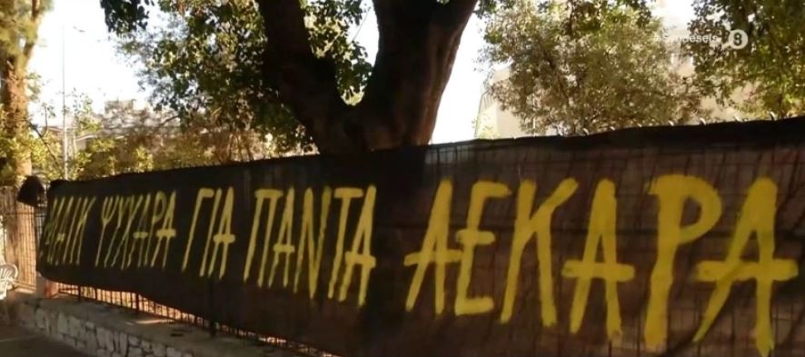 Εκεί άφησαν κεράκια, κασκόλ και λουλούδια ενώ ανέβασαν και ένα πανό που έγραφε «Μάικ ψυχάρα για πάντα ΑΕΚάρα», αποχαιρετώντας τον νεαρό που χτυπήθηκε με αιχμηρό αντικείμενο από Κροάτη οπαδό.