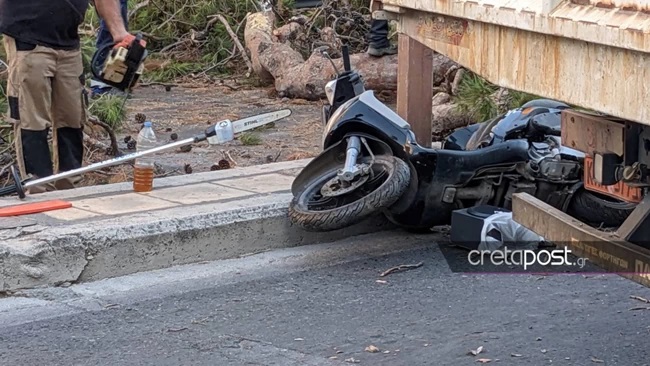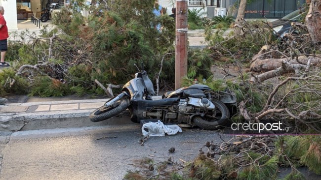 Η στιγμή που πέφτει το δέντρο πάνω στον μοτοσυκλετιστή