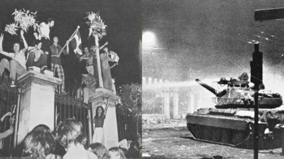 Από το ραδιόφωνο του Πολυτεχνείου μεταφέρθηκε η είδηση ότι είχαν βγει τα τανκς στους δρόμους: «Δεν θα χτυπήσουν τα παιδιά, τα αδέλφια μας οι φαντάροι, το φρούριο της ελευθερίας, το μόνο μέρος της Ελλάδας που είναι ελεύθερο. Δεν έχουμε όπλα. Προτάσσουμε τα γυμνά μας στήθη».