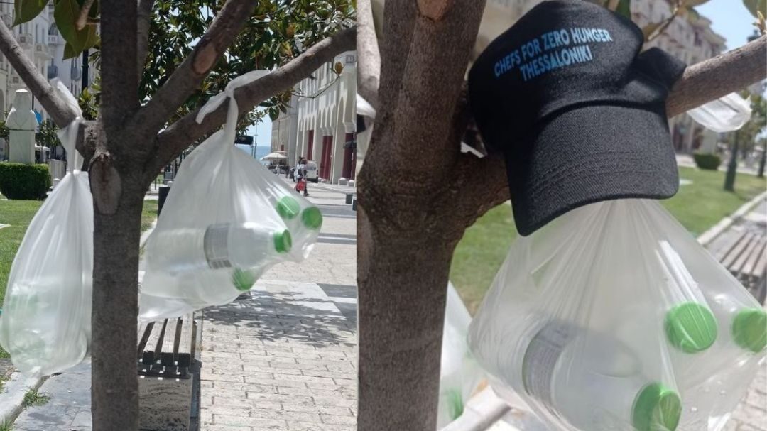 Μέλη της ομάδας «Chefs for Zero Hungers», που αποτελείται από εθελοντές μάγειρες της πόλης, άφησαν παγωμένα μπουκαλάκια με νερό και πάγο, σε παγκάκια κοντά στον Λευκό Πύργο, στην πλατεία Ναυαρίνου και την πλατεία Αριστοτέλους, ώστε να πιουν άστεγοι που ταλαιπωρούνται από τον καύσωνα. Μάλιστα, το απόγευμα πρόκειται να αφήσουν ξανά νερό αλλά και φρούτα.