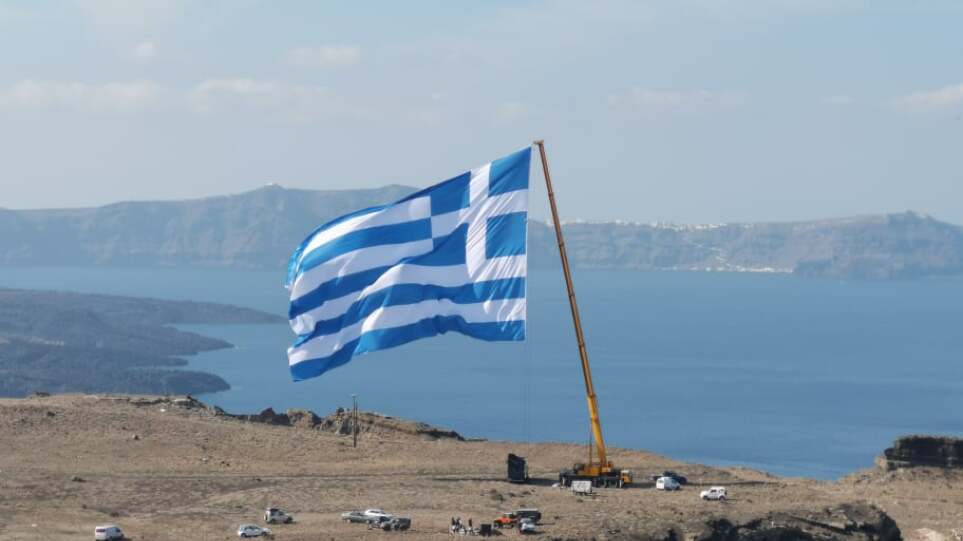 Στην Σαντορίνη υψώθηκε η μεγαλύτερη ελληνική σημαία.
