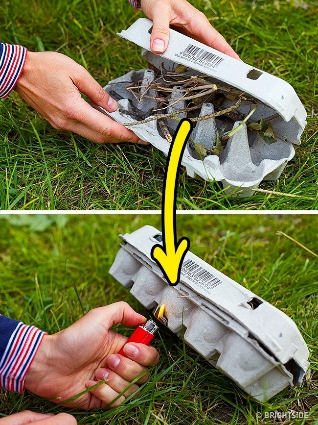 Για να ανάψετε γρήγορα μια φωτιά, βάλτε κλαδιά ή κάρβουνα μέσα σε ένα άδειο κουτί αυγών.