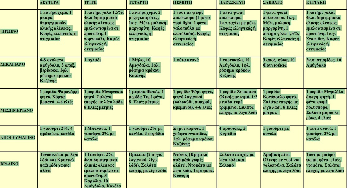 Αναλυτικά το εβδομαδιαίο πρόγραμμα διατροφής της δίαιτας ORAC