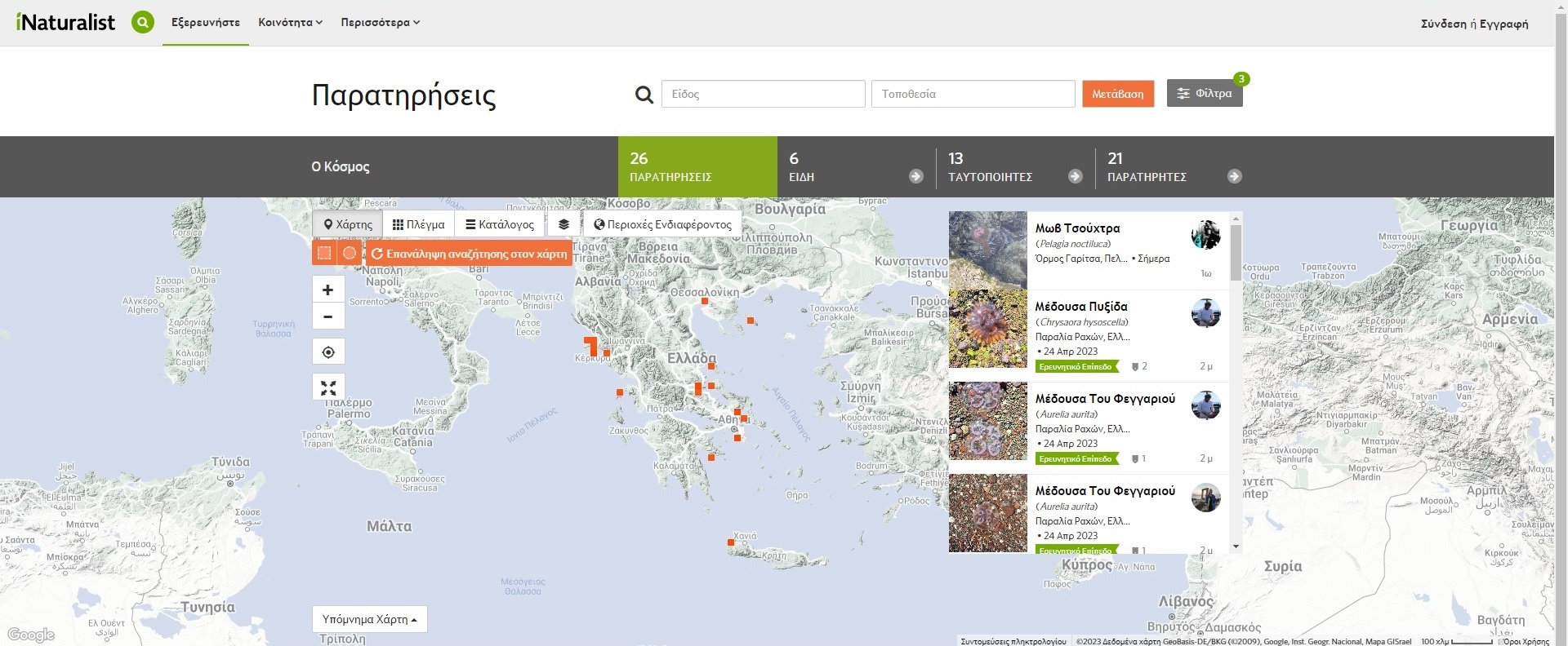 Σύμφωνα με το JellyReport, αν και είναι νωρίς και λόγω των χαμηλών θερμοκρασιών δεν έχει αρχίσει ο κόσμος να πηγαίνει για μπάνια, έχουμε ήδη τις πρώτες καταγραφές των μωβ μεδουσών για το 2023, όπως μπορείτε να δείτε στον χάρτη παρακάτω.