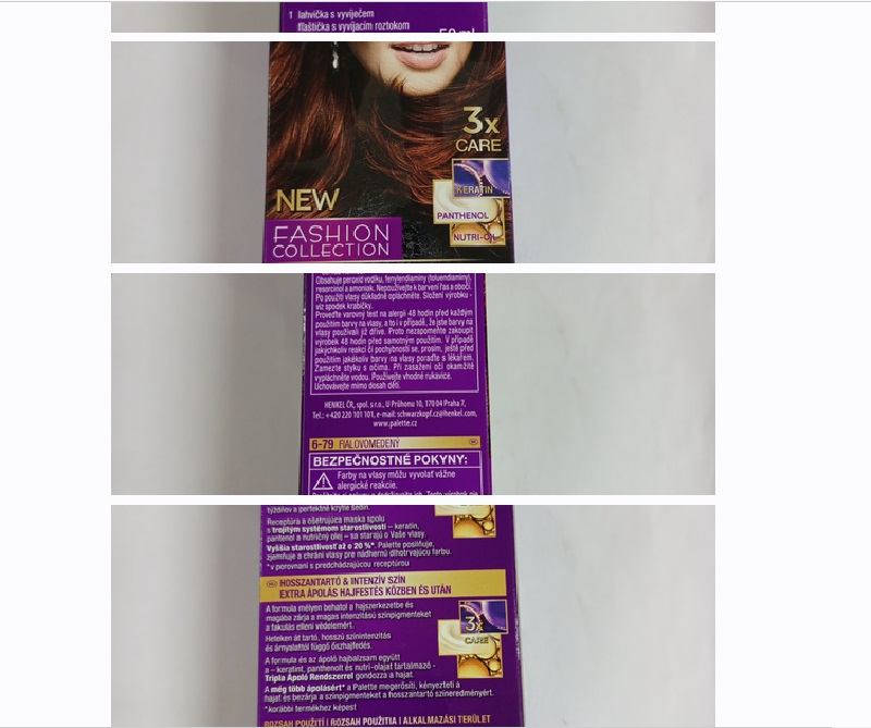 Οι συσκευασίες που επηρεάζονται φέρουν «Αριθμό παρτίδας 0827885432» και «Barcode 9000101214024». Επίσης περιέχουν ένα σωληνάριο κρέμας βαφής 50 ml, ένα μπουκαλάκι ενεργοποιητή 50 ml, ένα φακελάκι μάσκας περιποίησης 10 ml και ένα ζευγάρι γάντια. Η ανάκληση αφορά την αγορά της Τσεχίας, ενώ το προϊόν προέρχεται από την Γερμανία.