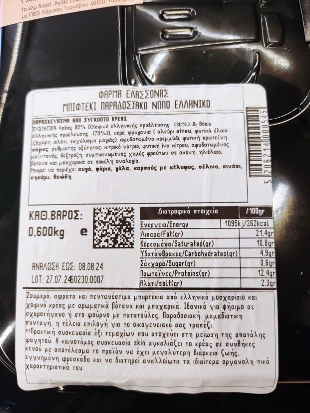 «ΜΠΙΦΤΕΚΙ ΠΑΡΑΔΟΣΙΑΚΟ ΝΩΠΟ» βάρους 0,600 κιλών, με ημερομηνία παρασκευής: 27/07/2024 LOT 27.07.2024 60230007 και ημερομηνία ανάλωσης έως: 08/08/2024.