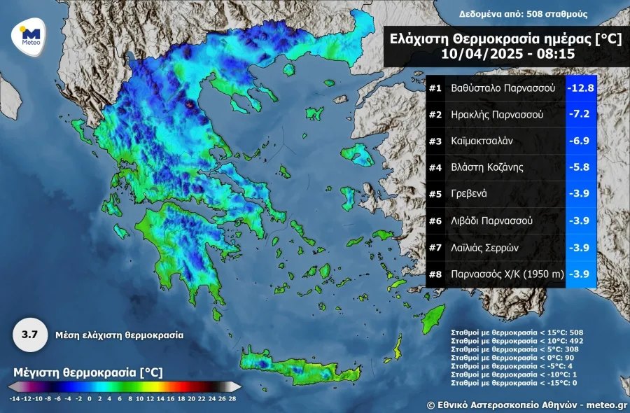 Σήμερα Παρασκευή οι ελάχιστες θερμοκρασίες(το πρωί) θα ανέβουν παντού εκτός από την Θράκη(όπου θα πέσουν) και τα ψηλά ορεινά της Μακεδονίας, αλλά θα κρατηθούν χαμηλά για την εποχή, ενώ οι μέγιστες θερμοκρασίες θα ανέβουν πολύ σε δυτική Ελλάδα, αλλά ανατολικά της Πίνδου θα παραμείνουν σε σχετικά χαμηλά επίπεδα για την εποχή και ιδίως μέσα στο Αιγαίο όπου οι κρύοι αλλά και θυελλώδεις βοριάδες που θα βγούμε αύριο(απο την νέα ψυχρή εισβολή που θα αγγίξει την ανατολική Ελλάδα και θα επηρεάσει την Τουρκία) θα ρίξουν τις θερμοκρασίες σε Αιγαίο αλλά και στις περισσότερες περιοχές ανατολικότερα της Πίνδου(εξαιρέσεις ο Θεσσαλικός κάμπος και ο κάμπος της Θεσσαλονίκης όπου οι άνεμοι ίσως και ανεβάσουν και λίγο τις θερμοκρασίες σε κανονικά για την εποχή επίπεδα).