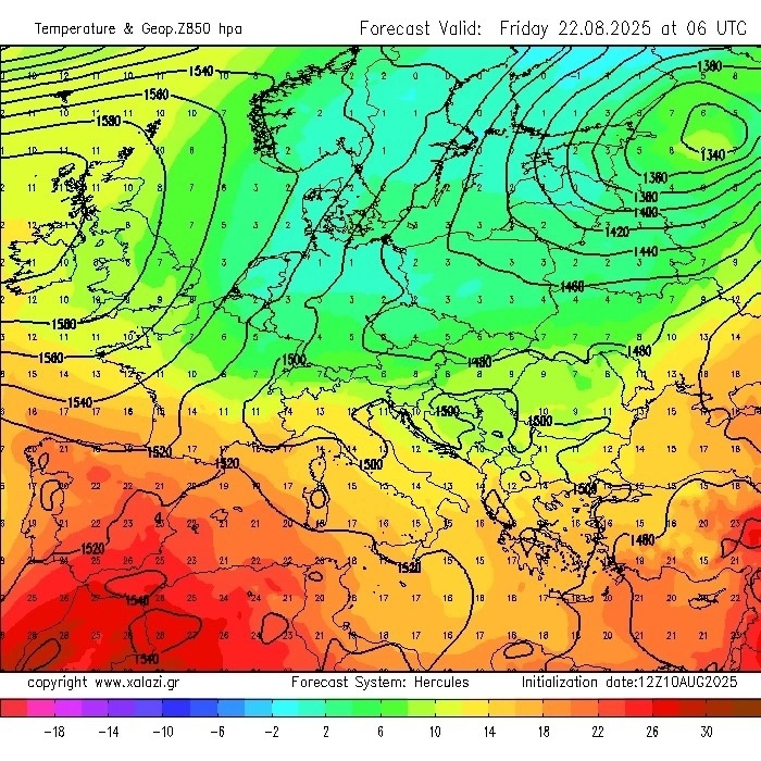 Αν τελικά διατηρηθεί αυτό το σενάριο, αυτή η τάση-την οποία κα παρακολουθεί η προγνωστική μας ομάδα τότε οι τελευταίες μέρες του Αυγούστου οι θερμοκρασίες πέσουν στους 20-25 Βαθμούς Κελσίου ενώ προς τα πιο ορεινά μας στους 10-15 βαθμούς Κελσίου.