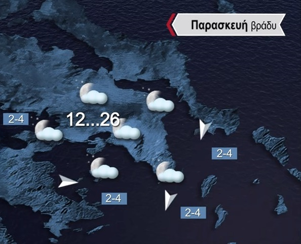 Την Παρασκευή και πάλι τα σύννεφα θα διέρχονται από τα δυτικά, νοτιοδυτικά προς τα ανατολικά, βορειοανατολικά. Δεν φαίνεται κάποιο βαρομετρικό χαμηλό να επηρεάζει την περιοχή μας, να έρχεται προς την περιοχή μας».