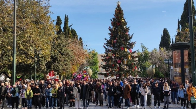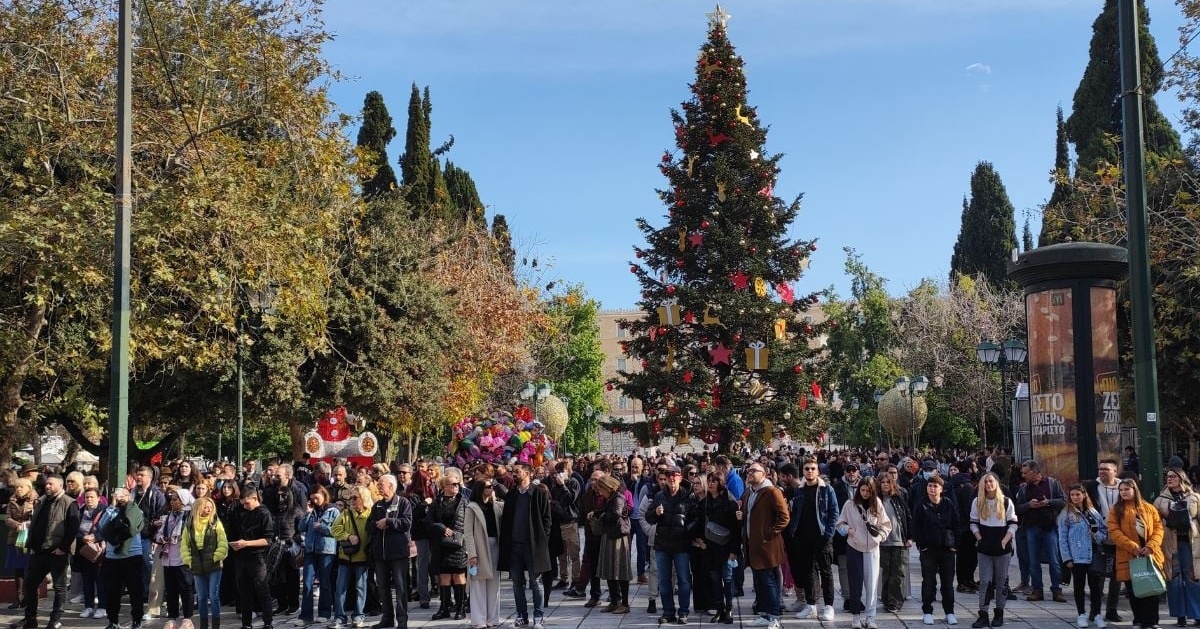 Η Αθήνα «φόρεσε» τα γιορτινά της: Φωταγωγήθηκε το χριστουγεννιάτικο δέντρο στην πλατεία Συντάγματος