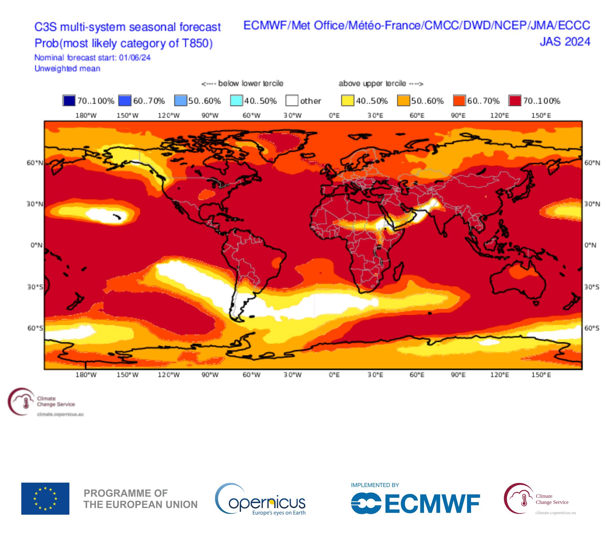 «Τα τρία μεγαλύτερα προγνωστικά κέντρα ατμοσφαιρικών και ωκεανογραφικών δεδομένων συμφωνούν ότι το καλοκαίρι του 2024 στην Ευρώπη προβλέπεται εξαιρετικά θερμό σε σύγκριση με τα τελευταία 30 χρόνια».