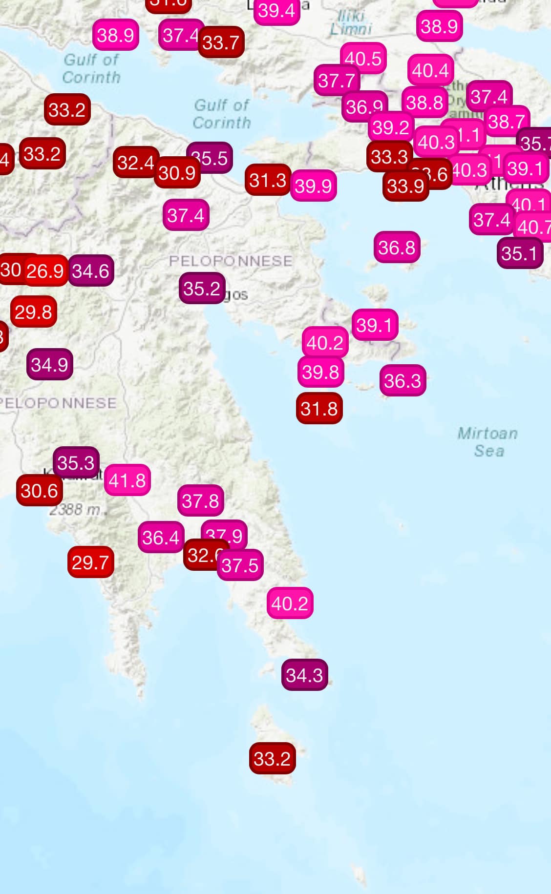 ❗️Στους 40 βαθμούς η θερμοκρασία σε πολλές περιοχές της ανατολικής Πελοποννήσου της Κρήτης της Ρόδο αλλά και των Κυκλάδων