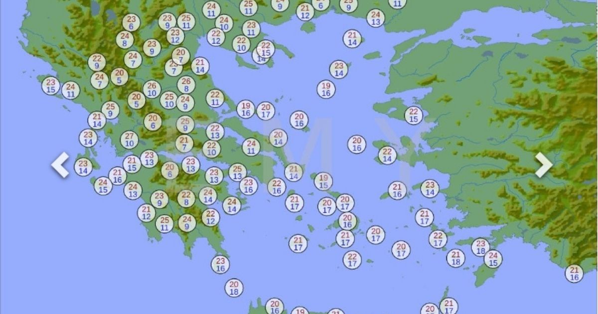 Η θερμοκρασία θα φτάσει στα ηπειρωτικά τους 24 με 26 βαθμούς και στα νησιά τους 22 με 24 βαθμούς Κελσίου.