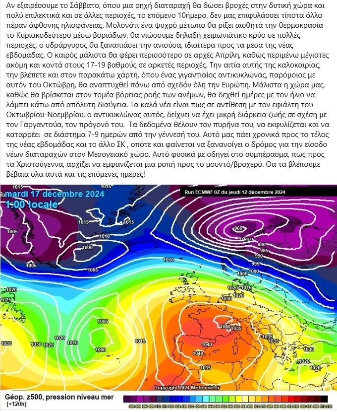 Αυτό σημαίνει πρακτικά πως προς το τέλος της νέας εβδομάδας και το άλλο Σαββατοκύρακο φαίνεται να ξανανοίγει ο δρόμος για την είσοδο νέων διαταραχών στον Μεσογειακό χώρο.