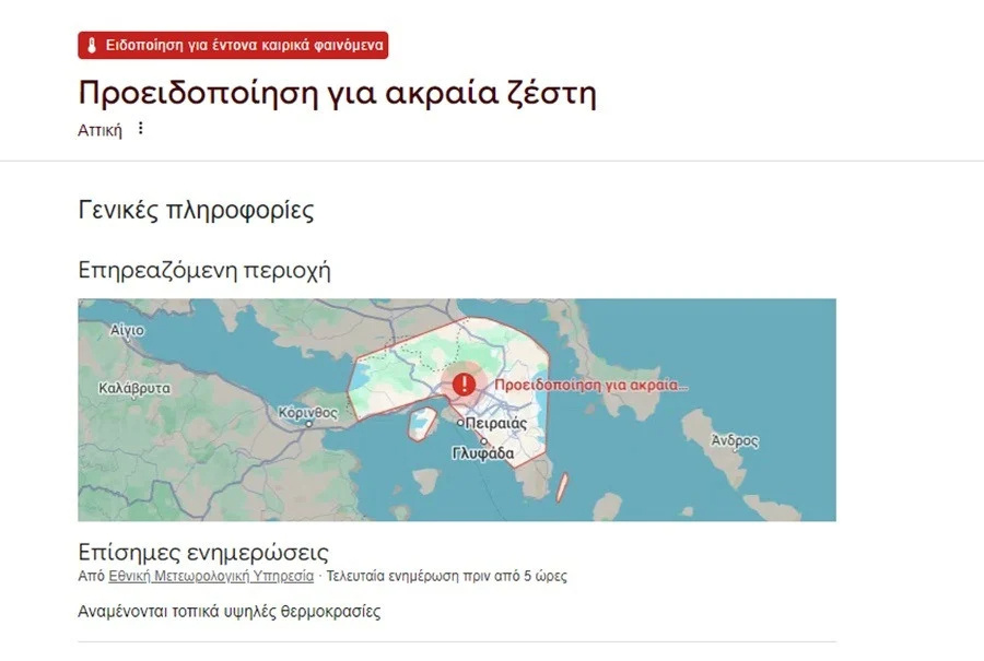 Πάντως η google βγάζει ειδοποίηση για την Αττική ότι αναμένονται υψηλές θερμοκρασίες