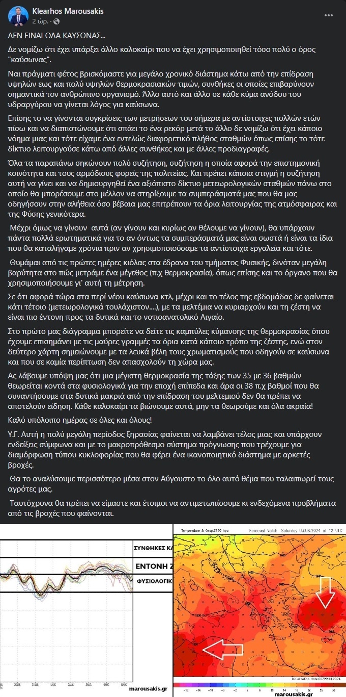 Καιρός – Αναλυτικά η ανάρτηση του Κλέαρχου Μαρουσάκη