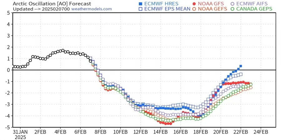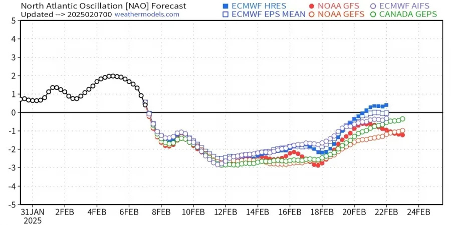 Δινω τα ΝΑΟ και ΑΟ απο τους μεσους όρους των ενσεμπλς GFS, Ευρωπαικου και GEM και απο τα κυρια μοντελα GFS, Ευρωπαικου και AIFS για τα 0z τρεξίματα και αναλυτικά μαζι με την διασπορά απο τα ενσεμπλς Ευρωπαικου απο τα 0z τρεξιματα και το ιδιο και απο ενσεμπλς αλλά και το κυιρο μελος GFS για τα 6z τρεξιματα.