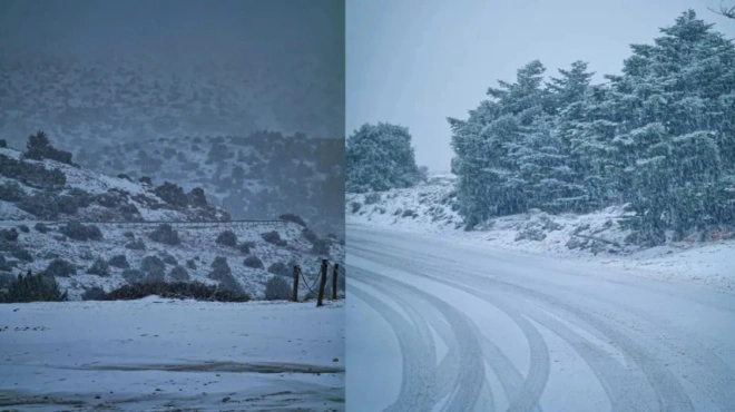 Στα λευκά ντύθηκε η Πάρνηθα, όπως φαίνεται και στις εικόνες από το Forecast Weather.