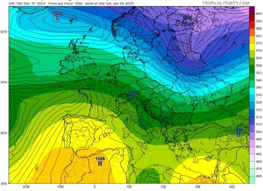 Η έναρξη του νέου έτους σηματοδοτεί μια σημαντική αλλαγή στο καιρικό τοπίο για την Ευρώπη. Μετά από μια περίοδο που κυριαρχείται από τον αντικυκλώνα των Αζορών, οι ατμοσφαιρικές συνθήκες πρόκειται να υποστούν ένα σημείο καμπής με την άφιξη μιας αρκτικής γούρνας που θα επηρεάσει την ήπειρο μεταξύ 1ης και 4ης Ιανουαρίου . Ενώ η κεντρική-βόρεια Ευρώπη θα βρίσκεται στο επίκεντρο ενός έντονου κύματος ψύχους, η Ιταλία, τουλάχιστον αρχικά, θα επηρεαστεί μόνο οριακά . Οι πιο πρόσφατες προβλέψεις μοντελοποίησης δείχνουν ότι η βροχόπτωση που σχετίζεται με αυτή τη φάση θα είναι περιορισμένη και θα επηρεάσει κυρίως τις χερσονήσους, αν και θα είναι περιορισμένης ποσότητας.
