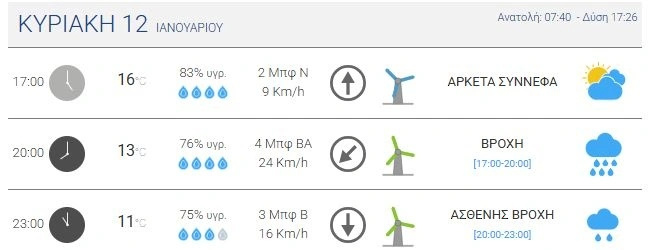 Η Εθνική Μετεωρολογική Υπηρεσία τόνισε σε χθεσινό (11/01) έκτακτο δελτίο ότι ο καιρός θα παρουσιάσει επιδείνωση από την Κυριακή (12/01) έως την Τρίτη (14/01) στη δυτική, την κεντρική και τη βόρεια Ελλάδα με βροχές και καταιγίδες, τοπικά ισχυρές κυρίως στα δυτικά.