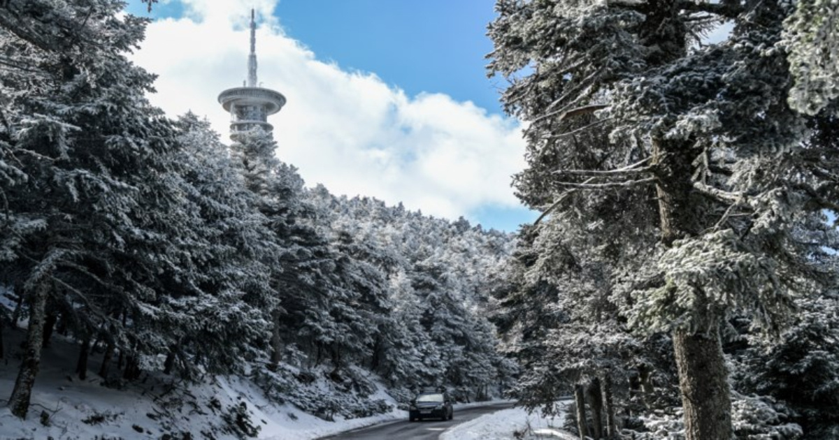 Επιδείνωση του καιρού καθώς ξεκίνησε πριν από λίγη ώρα να χιονίζει στο βουνό της Πάρνηθας.