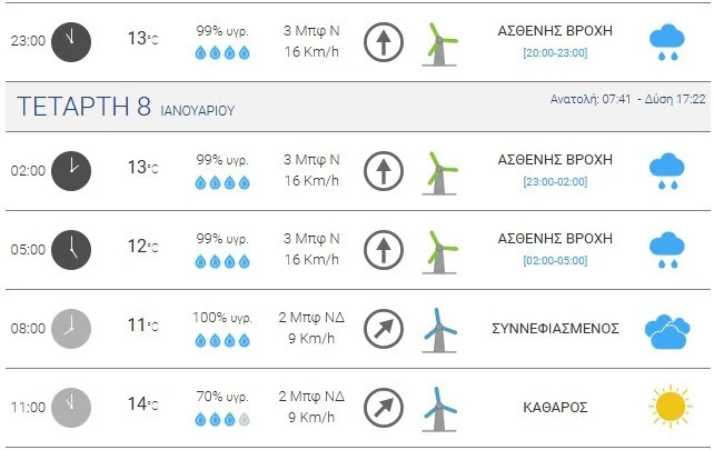 Σύμφωνα με την πρόγνωση του meteo, η βροχή δεν θα είναι μεγάλη έντασης και σε κάθε περίπτωση μέχρι να ξημερώσει θα έχουν σταματήσει τα φαινόμενα.