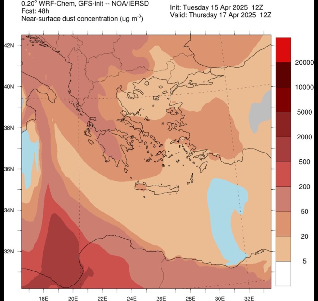 Από το απόγευμα του Μ. Σαββάτου οι συγκεντρώσεις σκόνης θα υποχωρήσουν σημαντικά.»