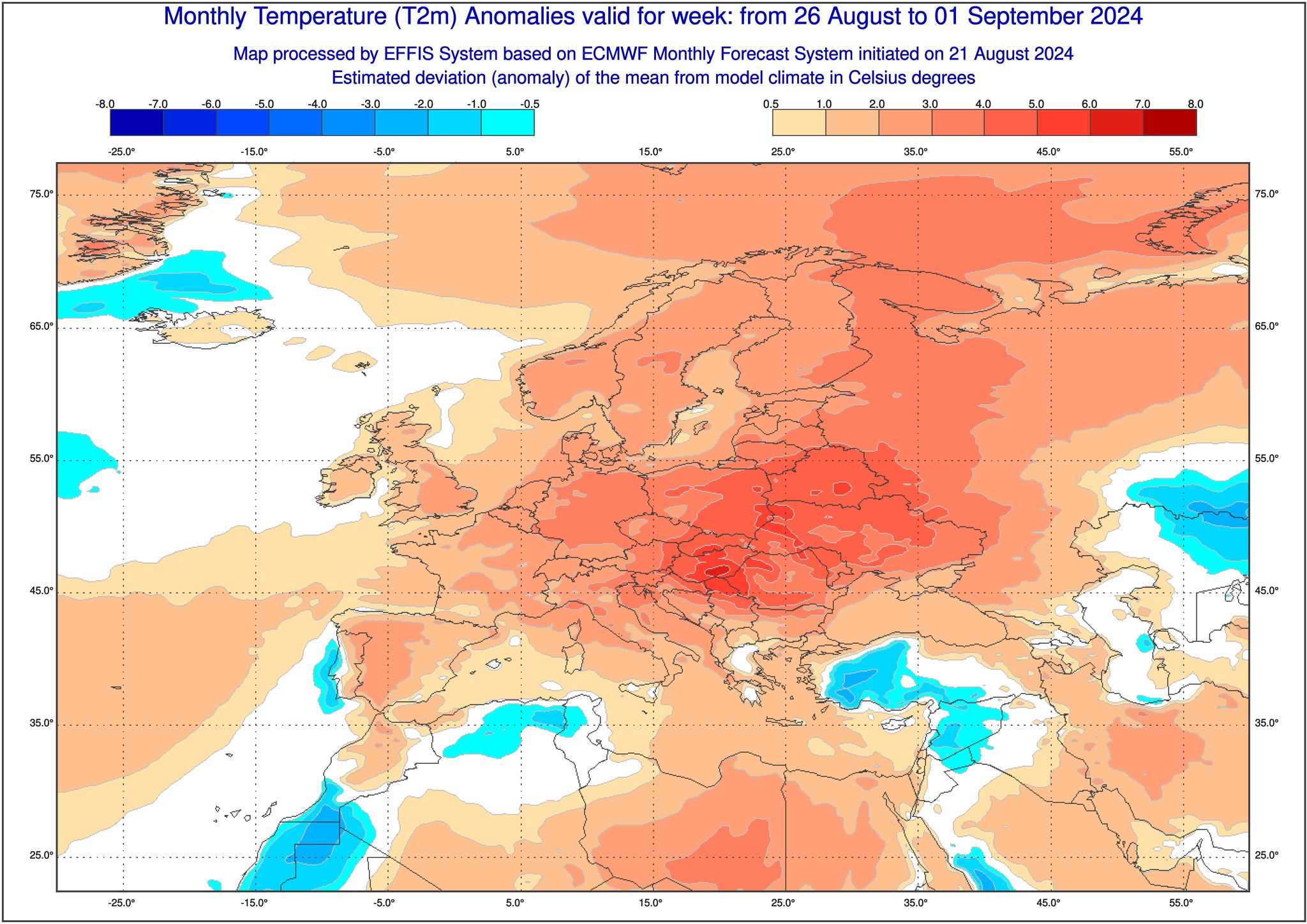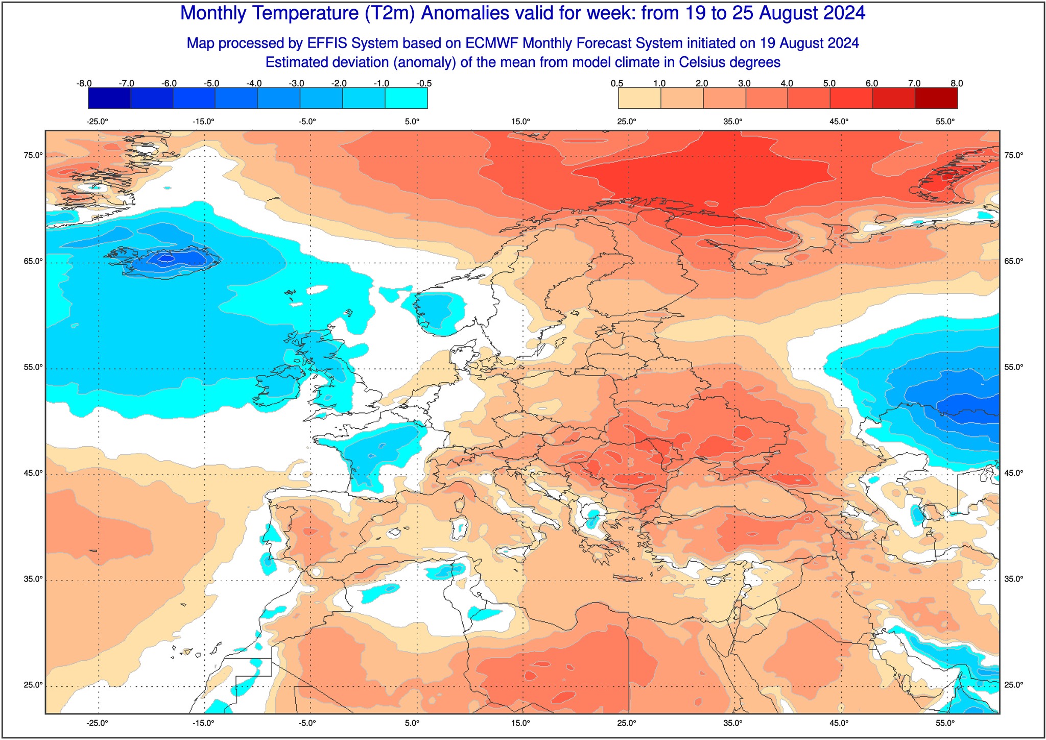 Σύμφωνα με τις μακροπρόθεσμες προγνώσεις των κλιματικών μοντέλων, οι τελευταίες ημέρες του Αυγούστου φαίνεται να κυλούν με φυσιολογικές θερμοκρασίες για τις περισσότερες ηπειρωτικές περιοχές και με λίγο περισσότερη ζέστη για τα νησιά μας.