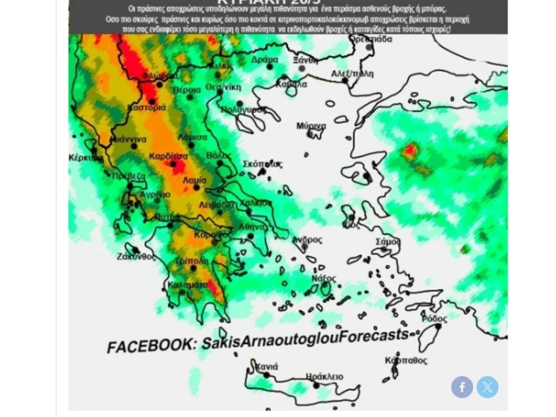 Εκτενή αναφορά στην κακοκαιρία που θα χτυπήσει τη χώρα με τα φαινόμενα να είναι έντονα την Κυριακή 26/5 έκανε ο Σάκης Αρναούτογλου, μέσω ανάρτησης του, στο Facebook.