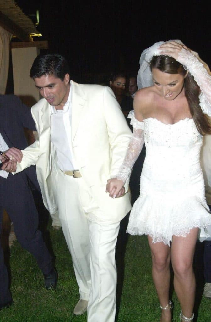 Ένα νυφικό Μάκης Τσέλιος επέλεξε να φορέσει η Τατιάνα Στεφανίδου στον γάμο της με τον Νίκο Ευαγγελάτο το 2003.