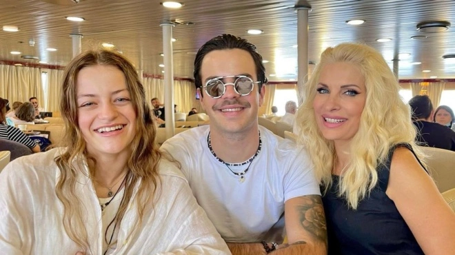 Η ίδια φωτογραφήθηκε με τον γιο της και την κόρη της Δωροθέας Μερκούρη, μέσα από το πλοίο και στη συνέχεια δημοσίευσε το στιγμιότυπο, μέσα από τον προσωπικό της λογαριασμό στο Instagram. Στη λεζάντα της φωτογραφίας, έγραψε: «Είμαστε τόσο χαρούμενοι που πάμε στο νησί!».