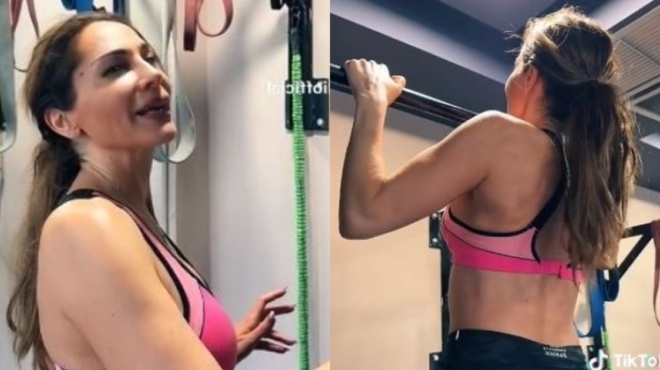 Ειδικότερα, η τραγουδίστρια τράβηξε ένα χιουμοριστικό βιντεάκι, στο οποίο φαίνεται να κάνει μονόζυγο χωρίς καμία δυσκολία, αλλά μόλις το πλάνο ανοίγει διακρίνεται ο προσωπικός της γυμναστής, που τη βοηθά.