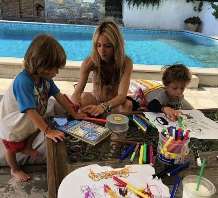 Είναι ροκ, ζεστό με όμορφα χρώματα, ενώ κυριαρχεί το ξύλο και τα ιδιαίτερα αντικείμενα στη διακόσμηση. Πρόκειται για μία cozy κατοικία, με λευκές και ξύλινες αποχρώσεις, πισίνα, γήπεδο τένις και μπάσκετ, ευρύχωρους χώρους ακόμη και μποστάνι.