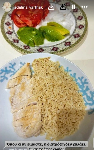 Το βράδυ της Τετάρτης (24-07) η Αντελίνα μοιράστηκε με τους followers της το light πιάτο –που συχνά καταναλώνει- κι έχει καταφέρει να χάσει κιλά. Όπως θα δεις και στη φωτογραφία το πιάτο της έχει ψητό κοτόπουλο, ρύζι, ντομάτα και αβοκάντο.