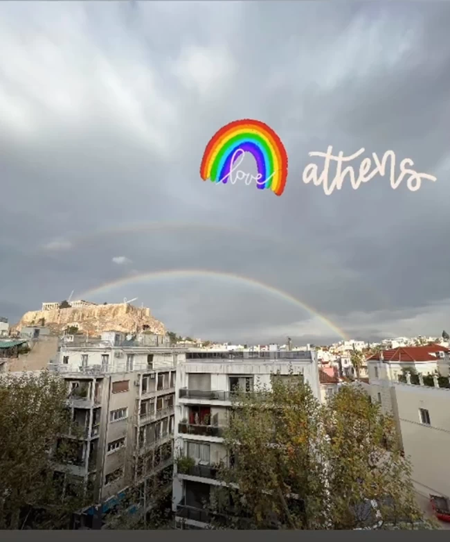 Η δημοσιογράφος και παρουσιάστρια του κεντρικού δελτίου ειδήσεων του ΣΚΑΙ δημοσίευσε ένα στιγμιότυπο στο Instagram, όπου μας έδειξε το ουράνιο τόξο που σχηματίστηκε μετά τη βροχή.