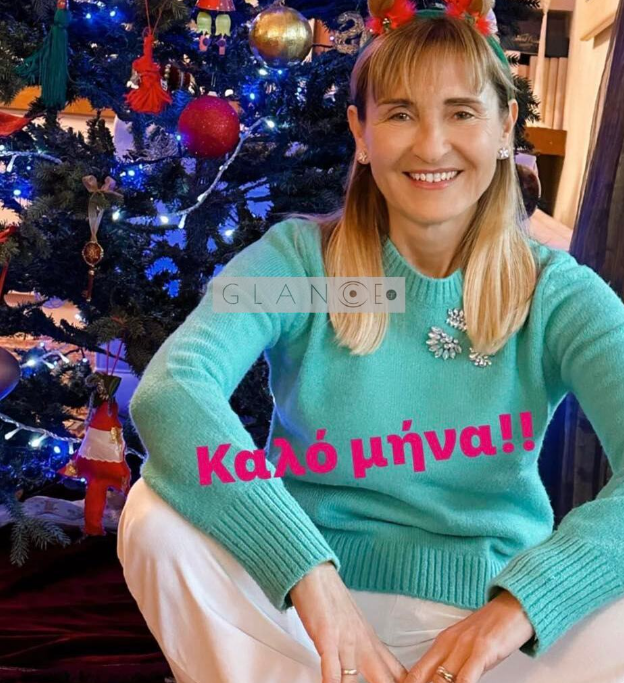 Η γνωστή δημοσιογράφος Μάρα Ζαχαρέα φωτογραφίζεται μπροστά στο Χριστουγεννιάτικο δέντρο της